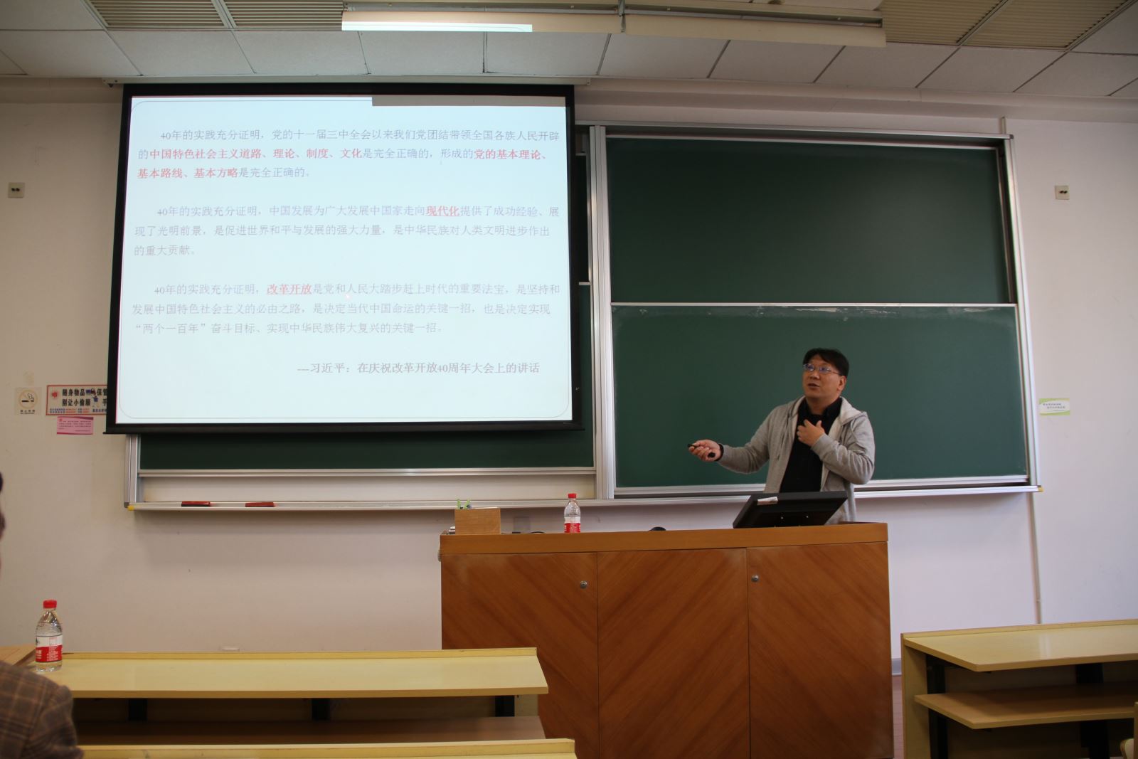 学院党委邀请哲学学院党委书记袁新副教授为信息学院全体教职工作题为《从历史唯物主义的视野观察两会议题——新文明的建设和探索》学习辅导报告。他用辩证唯物论的方法从专业的视角解读两会精神,并结合习近平重要讲话思想和马克思主义相关论著,对当下形势热点进行深入浅出的分析。他满腹经纶、引经据典、信手拈来,给工科的教师有耳目一新之感,让与会人员听得意犹未尽。