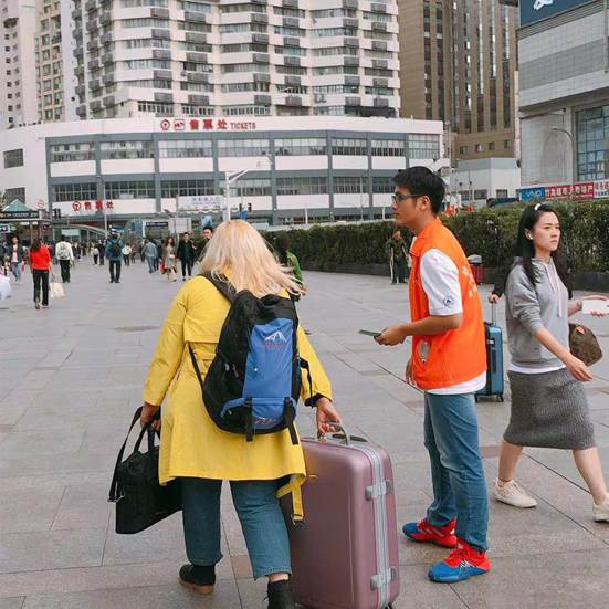 19级的一名志愿者通过观察,发现一位外国友人可能需要帮助,随即主动上前,使用英语进行交流并随后引导她完成了包括人工购票、进站等车等一系列流程。“people here are kind.”这样的感谢与赞扬的话从一位来自外国的游客的口中说出,并潺潺流过志愿者们的心间,使志愿者们对于这次火车站志愿导航服务的意义有了更深的理解和更大的感触,也让这样的志愿者活动从代表信院,代表复旦大学学生升华到代表上海市青年乃至代表中国的优秀青年的层面,来为祖国良好形象的树立出一份青年之力。