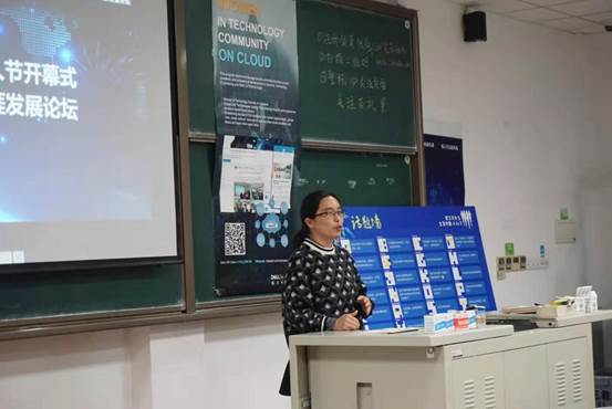 在观看一段活泼生动的开场视频后,同学们给予热烈的掌声,开幕式也正式拉开帷幕。在主持人李成同学的邀请下,黄芳老师首先上台发表致辞。在致辞中,黄老师表示信息人节是信息学院延续多年的优良传统,旨在帮助学生指导生涯规划,明确未来方向,这不仅是一场科技盛宴,也是为同学们答疑解惑的交流平台,希望同学们在到场校友前辈的教导下有所收获。同时10月24号正是程序员的节日,也就是身为信息学院的学子我们的节日,在此黄芳老师也对同学们的美好前景表示了祝愿。伴随着同学们的热情掌声,黄芳老师宣布复旦大学信息学院第十九届信息人节正式开幕。