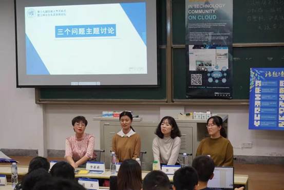 接下来是同学们的提问环节,同学们积极配合参与,向嘉宾们提出两个问题“工作中遇到性别歧视应该怎么做?”“本科阶段是否应该选择去实验室或实习?”,四位嘉宾就自己的个人经验,向同学们真诚分享了自己的看法,一些诙谐幽默的职场小故事也让教室里充满欢声笑语。