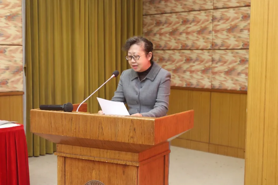 王爱萍代表学校兄弟统战团体致贺词,表示各兄弟团体将继续与侨联相互扶持、并肩奋斗,为学校事业发展贡献更大力量。
