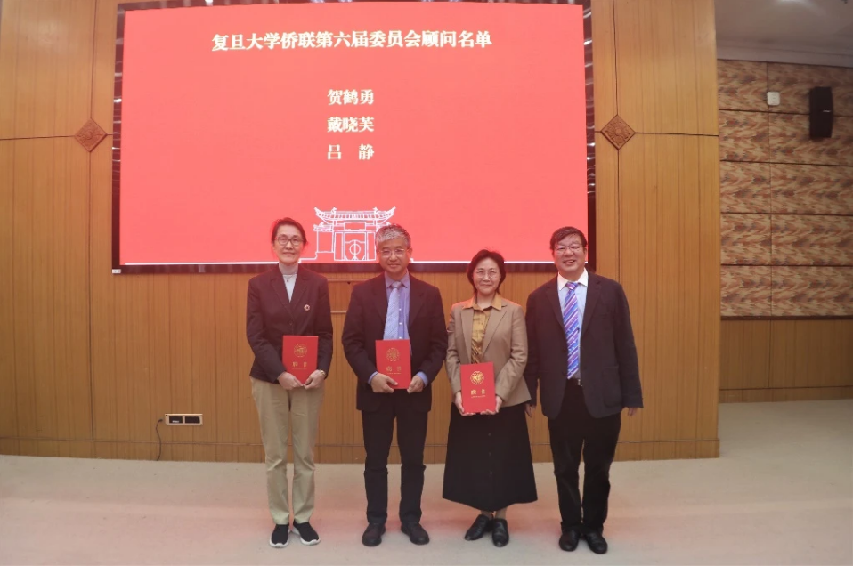 赵东元为校侨联第六届委员会顾问贺鹤勇、戴晓芙、吕静颁发聘书,感谢这三位经验丰富的老师继续支持侨联的工作。