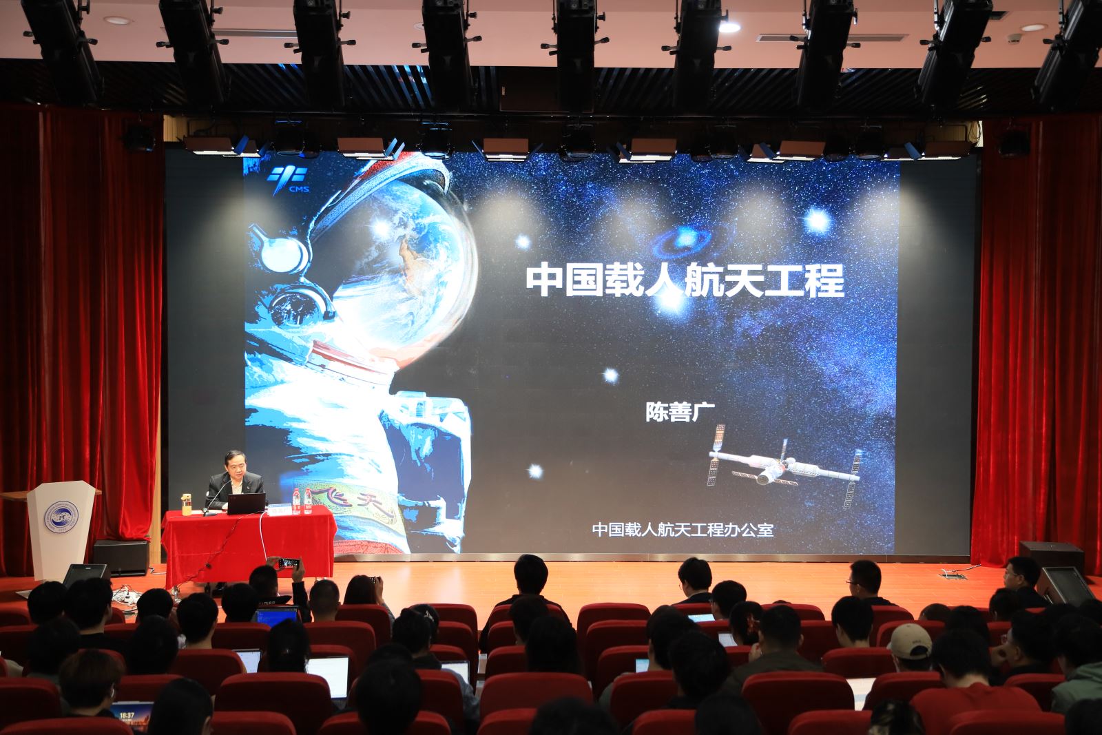 继而,陈善广主任详细讲述了世界各国,尤其是中国在载人航天领域内的发展历程。他从早期的美苏太空竞赛谈起,经过国际空间站的建设,直至太空旅游的现状与未来。通过对中国“三步走”战略的介绍——包括载人飞船计划、空间实验室以及空间站项目,陈善广主任向学生们展示了中国在航天领域的远见与决断。